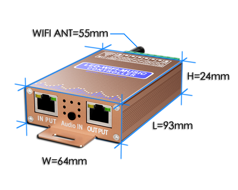 具备实时音乐频谱等功能,内置高灵敏麦克风环境声音采集电路(也可线路输入声音信号),同时支持灵敏度调节功能,以适应不同的工作环境。